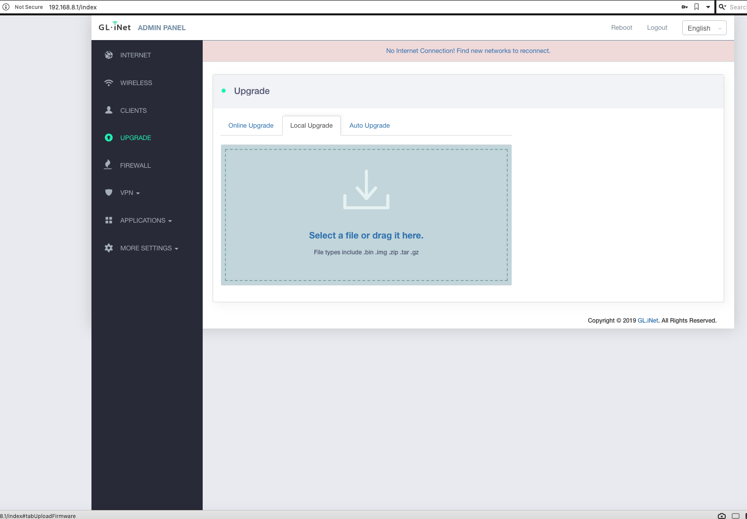 Als erstes solltest Du die aktuelle Freifunk München Firmware für den GL-MT300N herunterladen. Die Versionsnummer steht auf der Rückseite des Geräts. Am besten nimmst Du den Update-Kanal „stable“. Die Router von GL.iNet werden von Werk ab mit OpenWRT geliefert, deshalb gibt es nur Upgrade-Firmware.