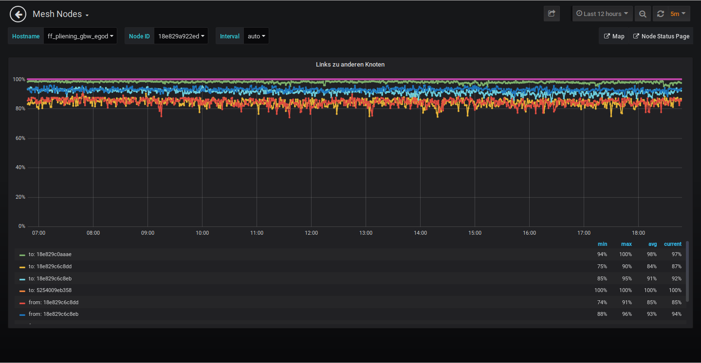 Hier wird die Qualität der einzelnen Mesh-Links angezeigt zu dem und mit dem der Knoten eine Meshverbindung unterhält. Hierbei werden folgende Werte visualisiert: