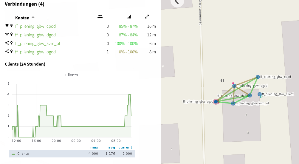 Hier wird die Anzahl der aller Clients WLAN (2,4 und 5 GHz) sowie der via LAN-Kabel verbundenen angezeigt. Man erhält also so recht schön einen Überblick über die Nutzung des betreffenden Knotens.